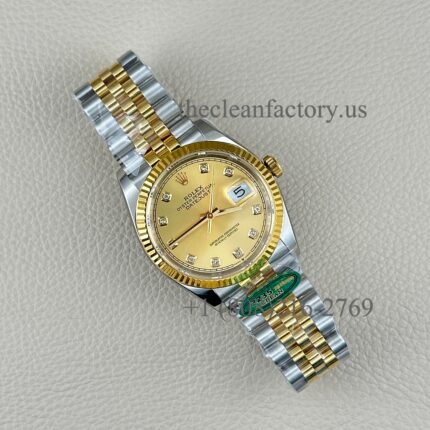 The Best Replica Rolex DateJust 36mm 904L Oystersteel 126233-0016 Super Clone 3235 Movement Yellow Gold Wrap Fluted Bezel Yellow Gold Dial Oyster Bracelet Waterproof Clean factory Made
