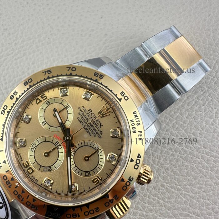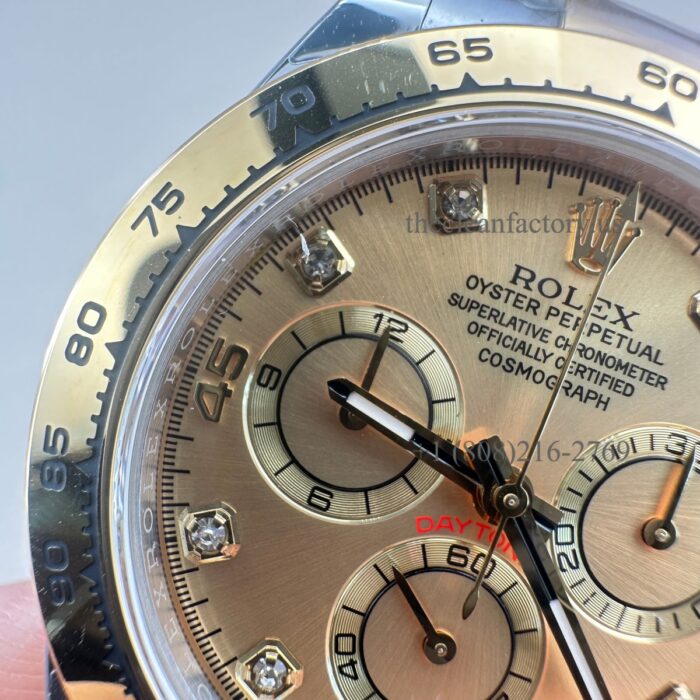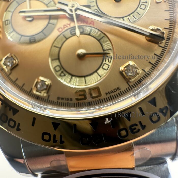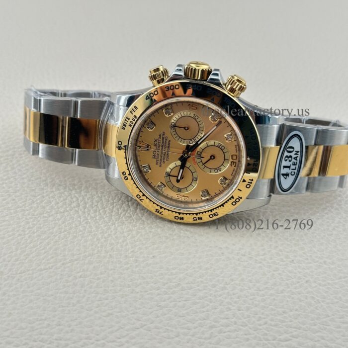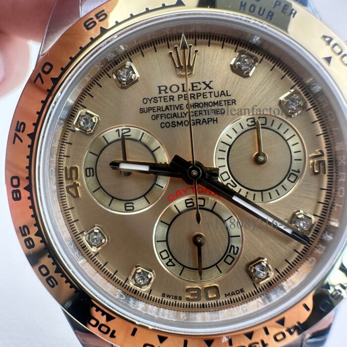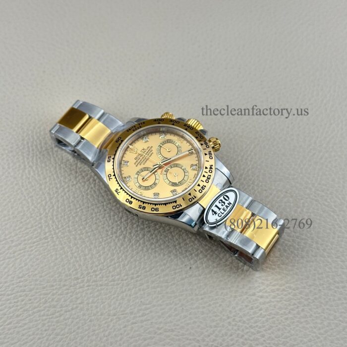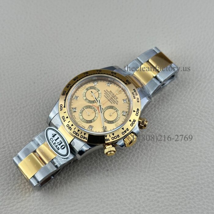 Clean Factory Rolex Daytona 116503-0006 Champagne Diamond Dial Two-tone 18k Gold wrapped Super Clone Chronograph waterproof Best replica 4130 Movement