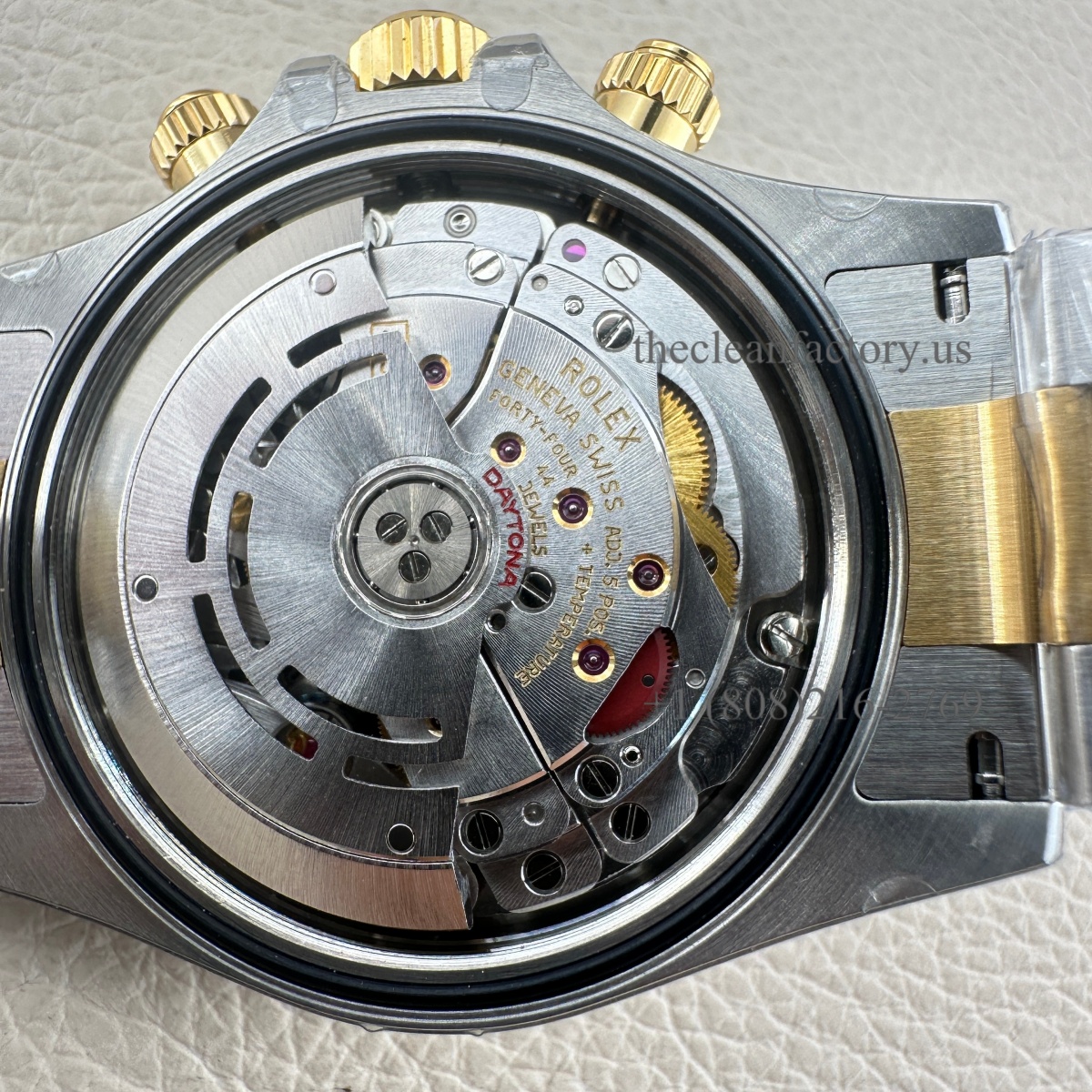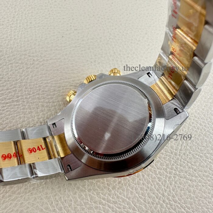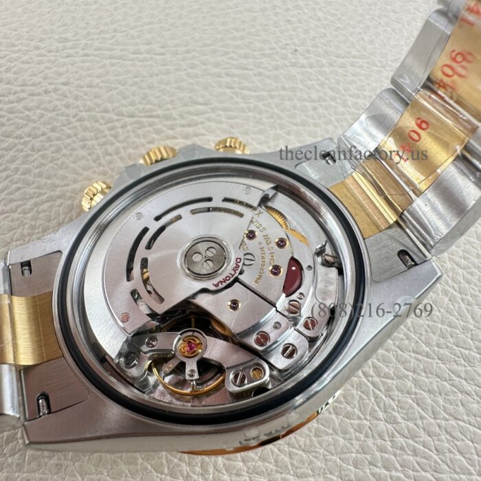 CASE | – 40mm insider 904L Stainless steel monobloc construction (Upgraded about 5um thick Real 18kt Gold Wrap avoid fad, and can keep the identical color to the genuine) – New Symmetrical case lugs size – Screw-down case-back, push-buttons and winding crown with synthetic rubber seals – ROLEXROLEX laser engraving on Rehaut ring – DLC scratch-protection coating – Dimensions 100% identical with genuine. This case can be used on the genuine. – Rolex Reference Number: 116503-0006 |