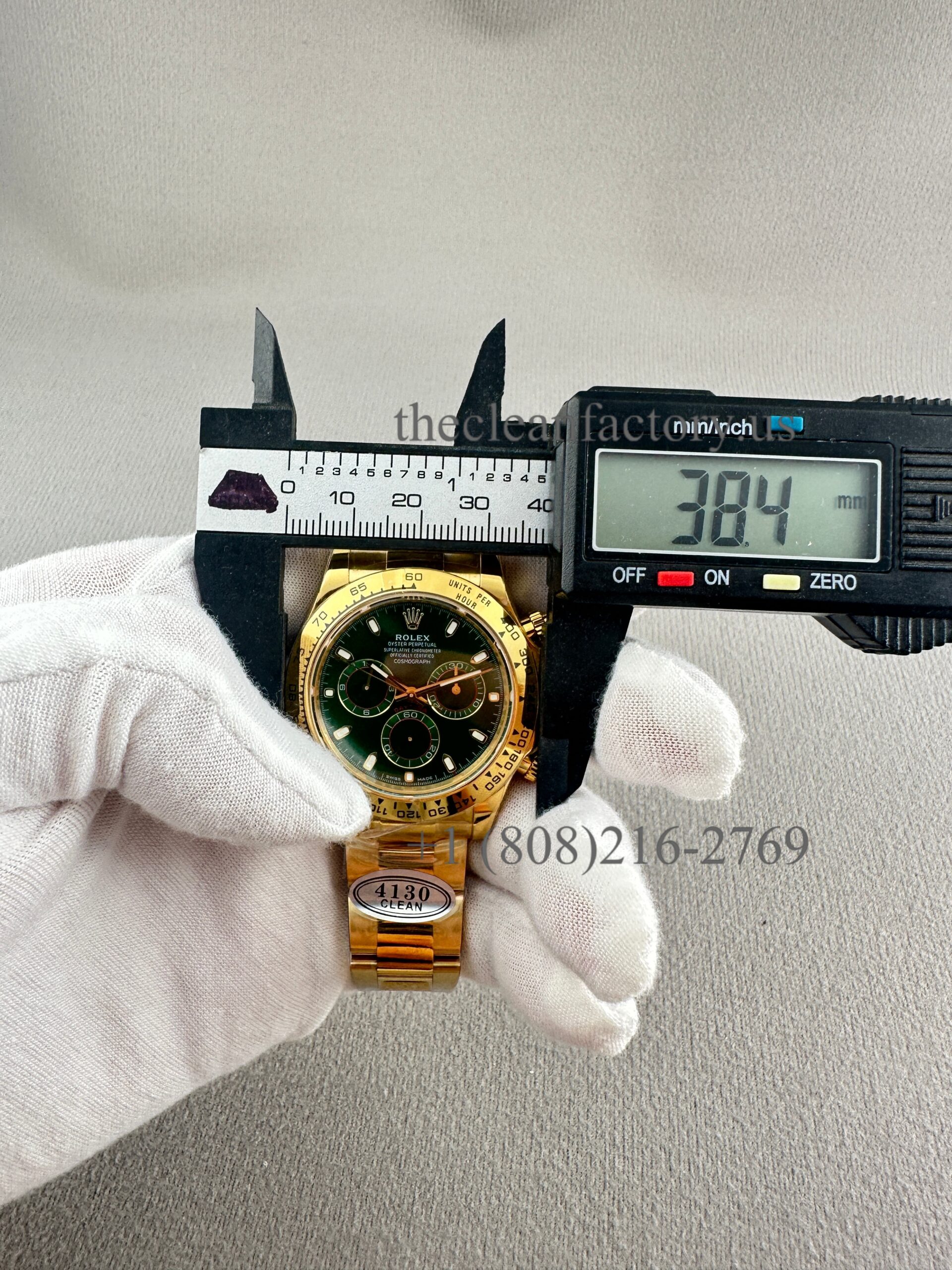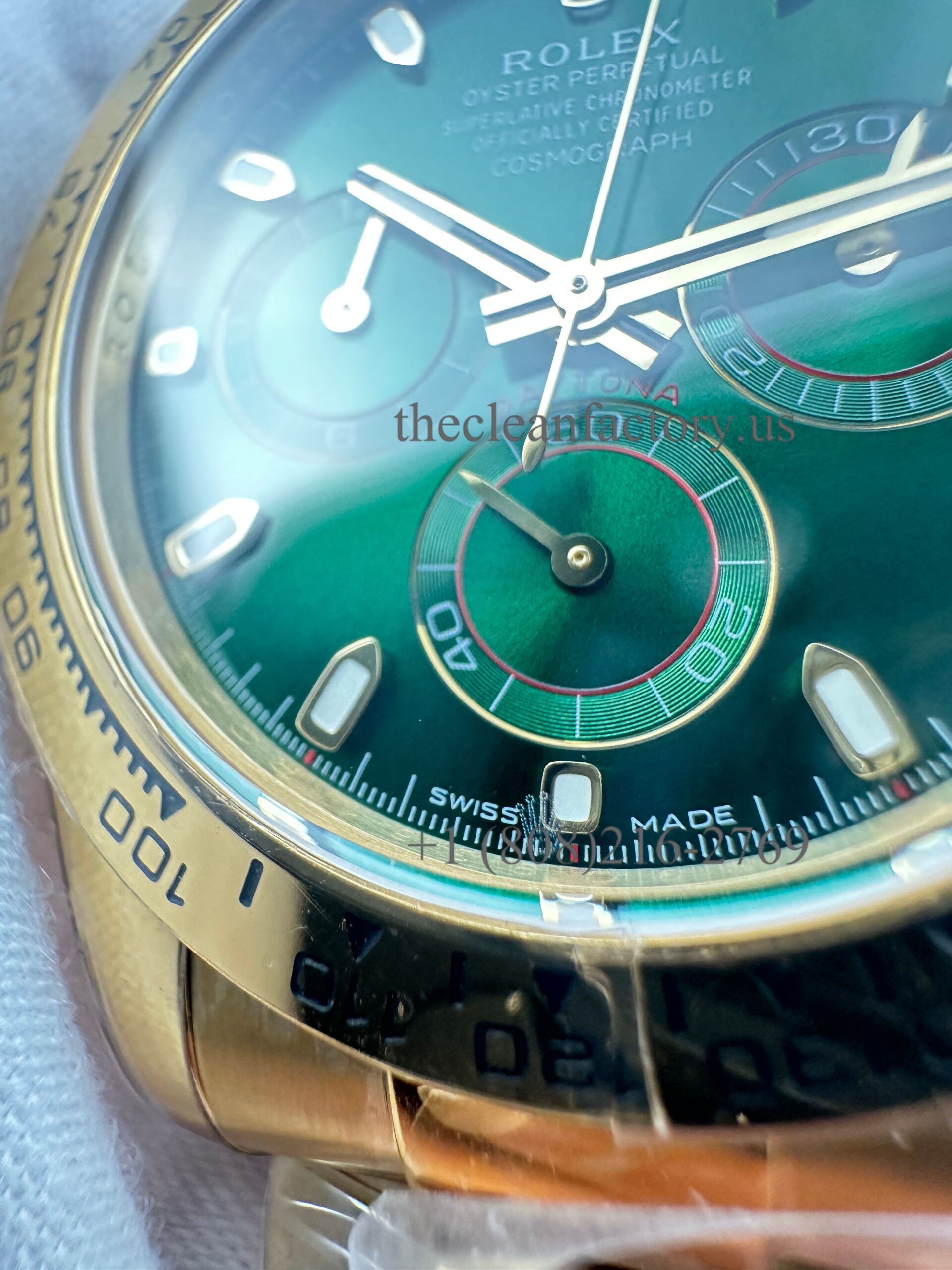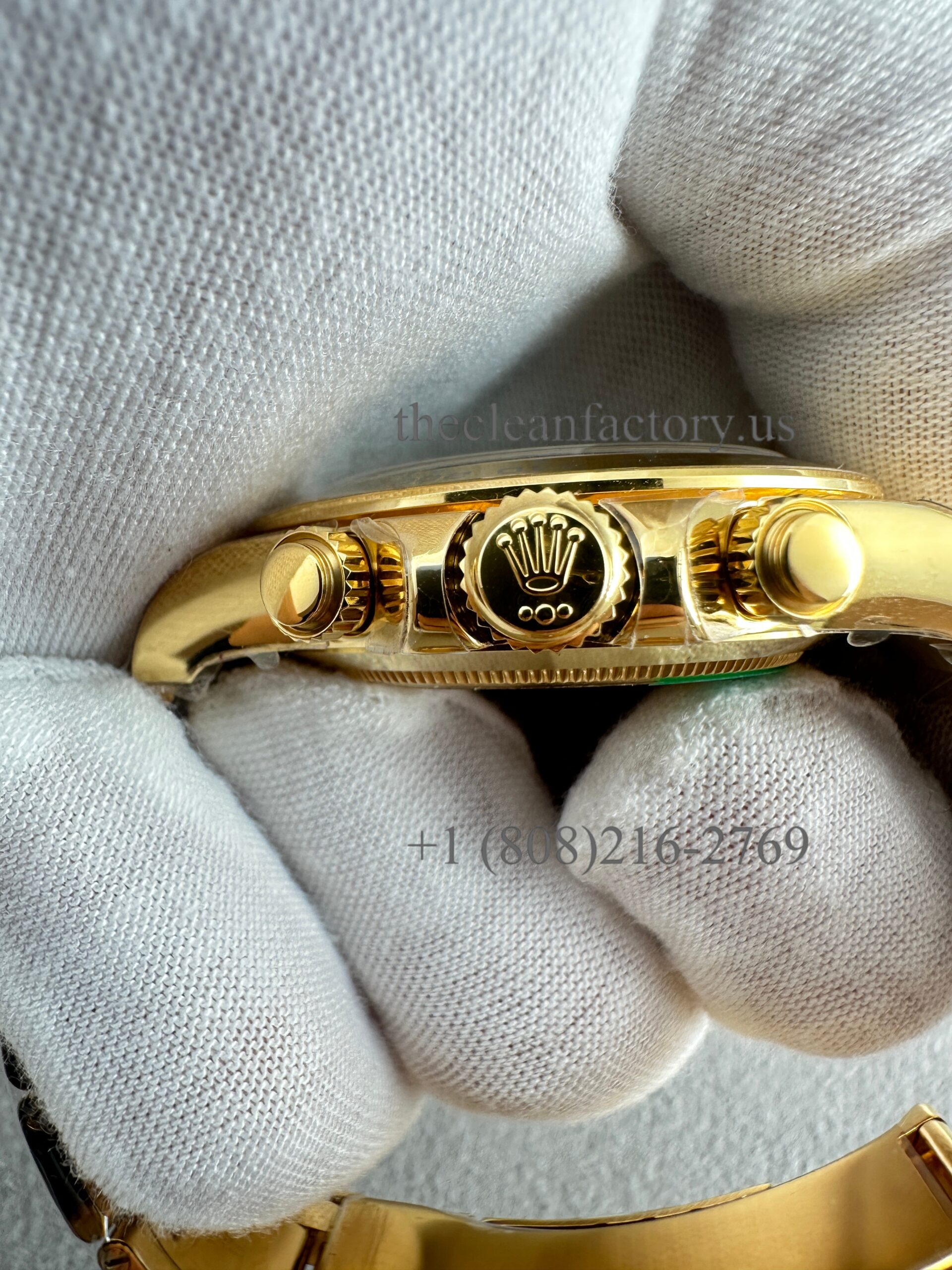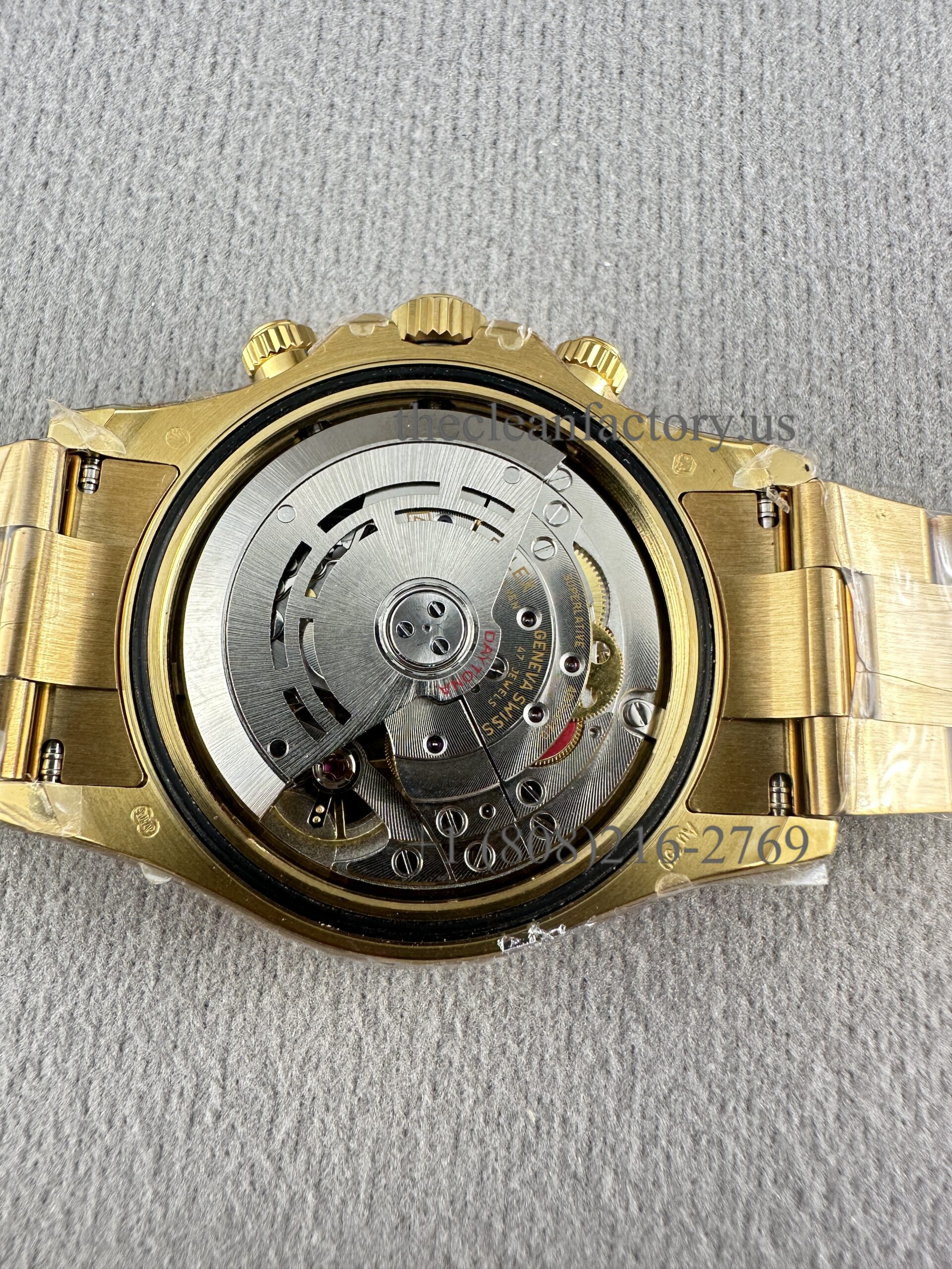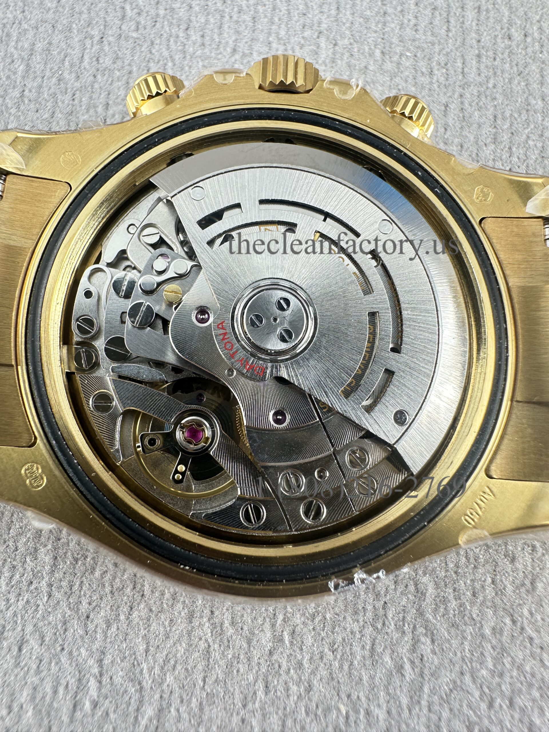 | CASE | – 40mm monobloc construction (Upgraded about 5um thick Real 18kt Gold Wrap avoid fad, and can keep the identical color to the genuine) – New Symmetrical case lugs size – Screw-down case-back, push-buttons and winding crown with synthetic rubber seals – ROLEXROLEX laser engraving on Rehaut ring – DLC scratch-protection coating – Dimensions 100% identical with genuine. This case can be used on the genuine. – Rolex Reference Number: 116508-0013 |