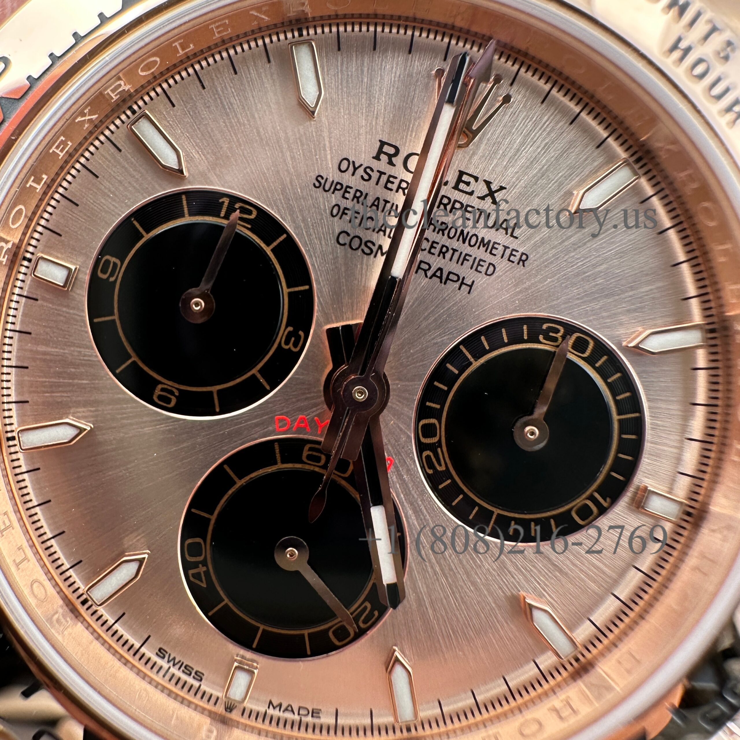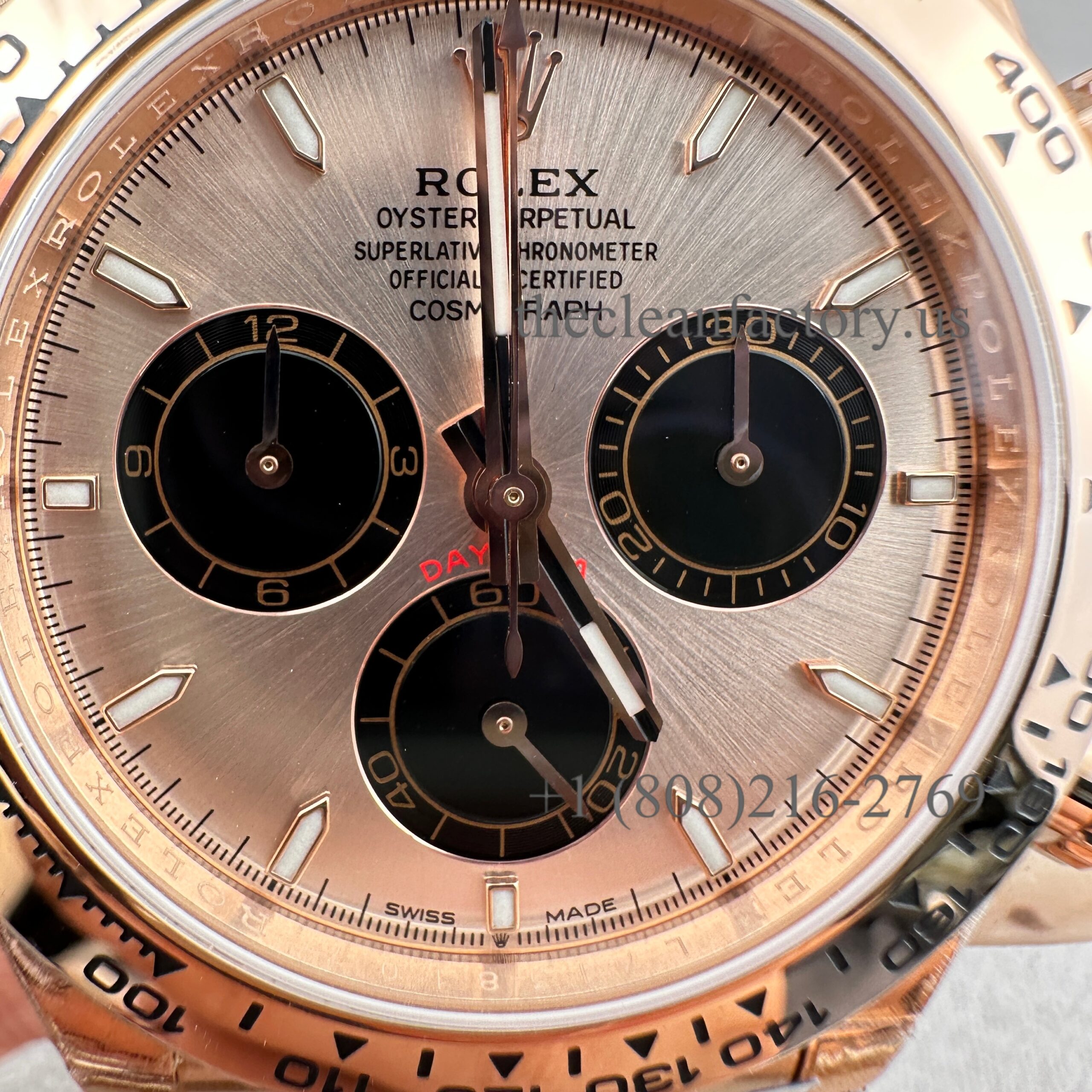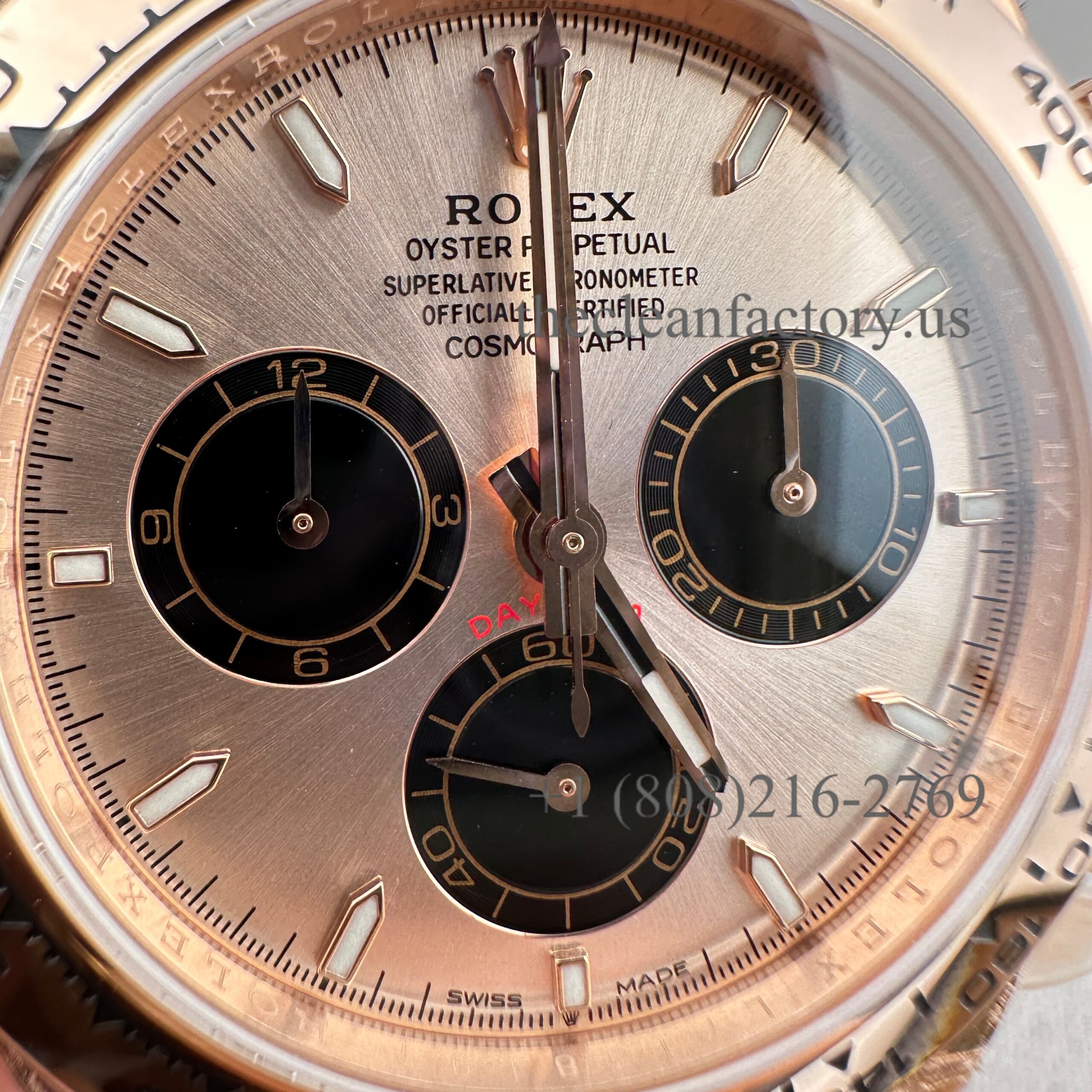 | CASE | – 40mm insider 904L Stainless steel monobloc construction (Upgraded about 5um thick Real 18kt Gold Wrap avoid fad, and can keep the identical color to the genuine) – New Symmetrical case lugs size – Screw-down case-back, push-buttons and winding crown with synthetic rubber seals – ROLEXROLEX laser engraving on Rehaut ring – DLC scratch-protection coating – Dimensions 100% identical with genuine. This case can be used on the genuine. – Rolex Reference Number: 126505-0003 |