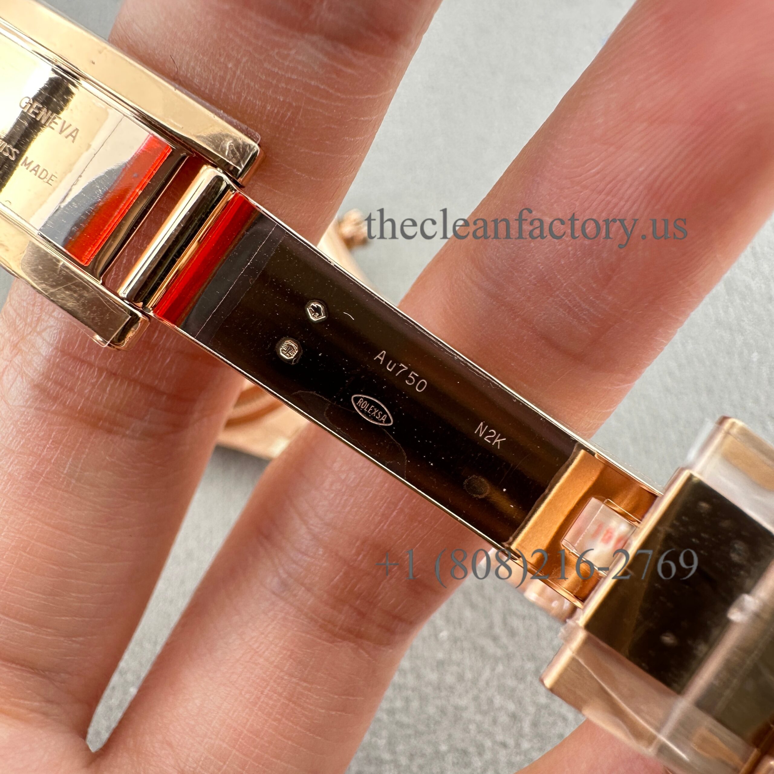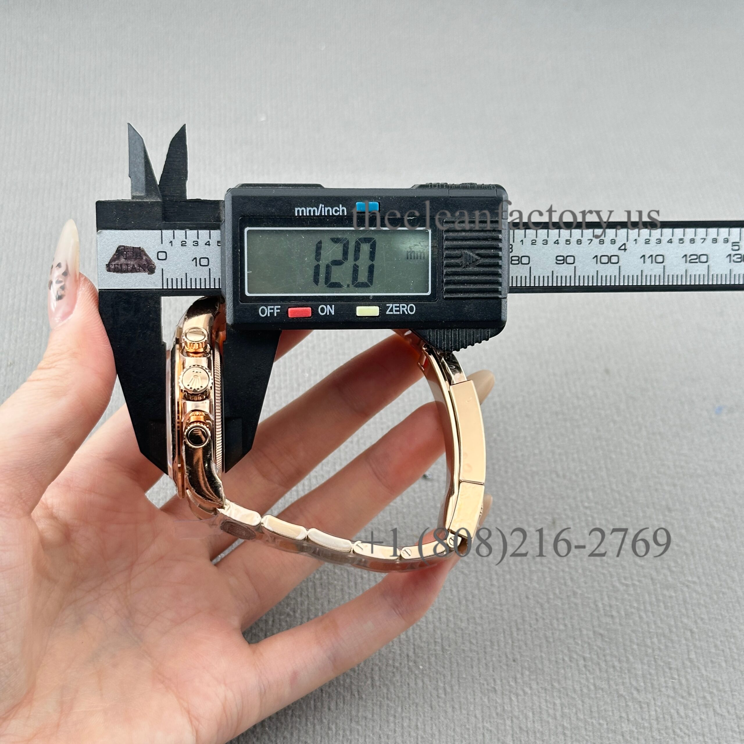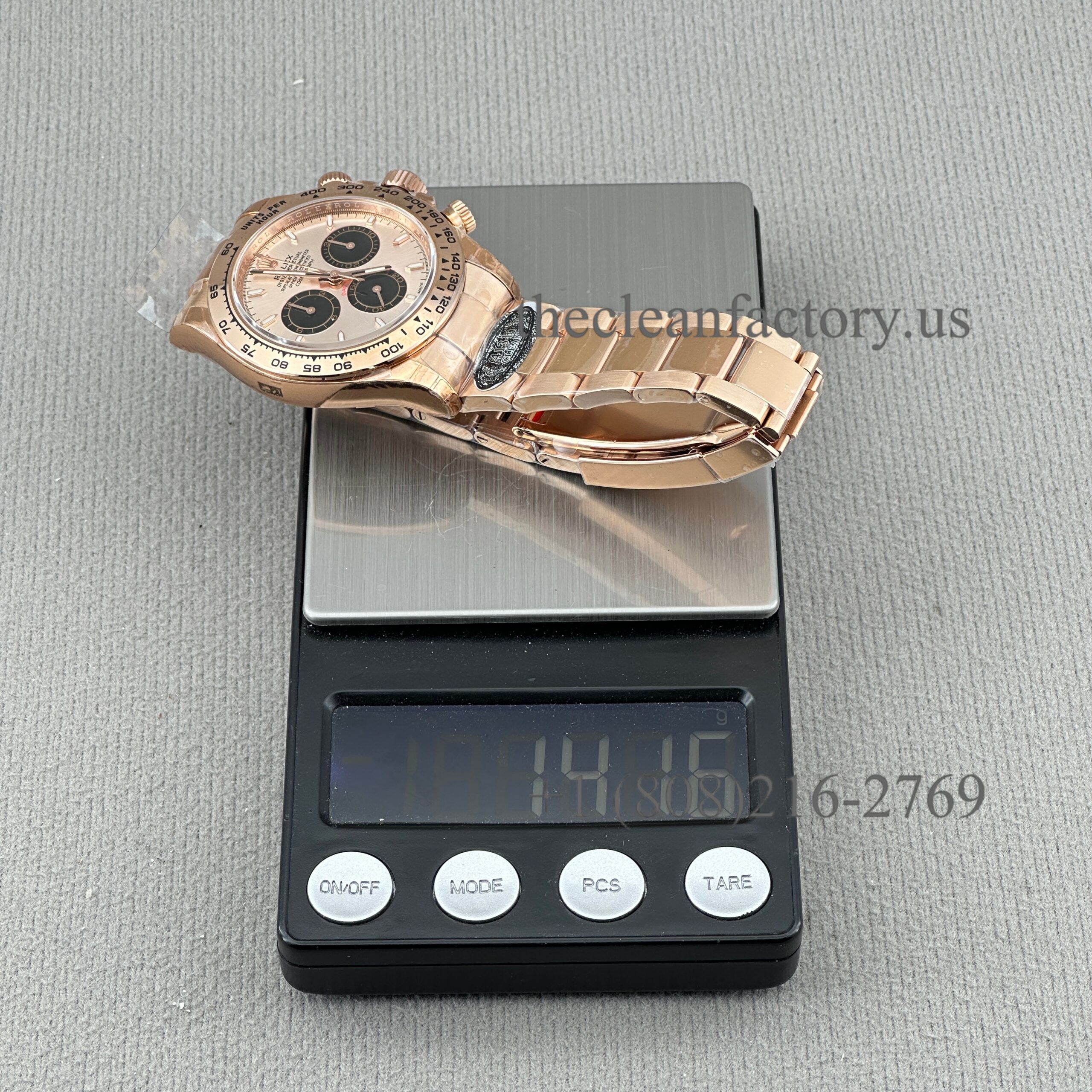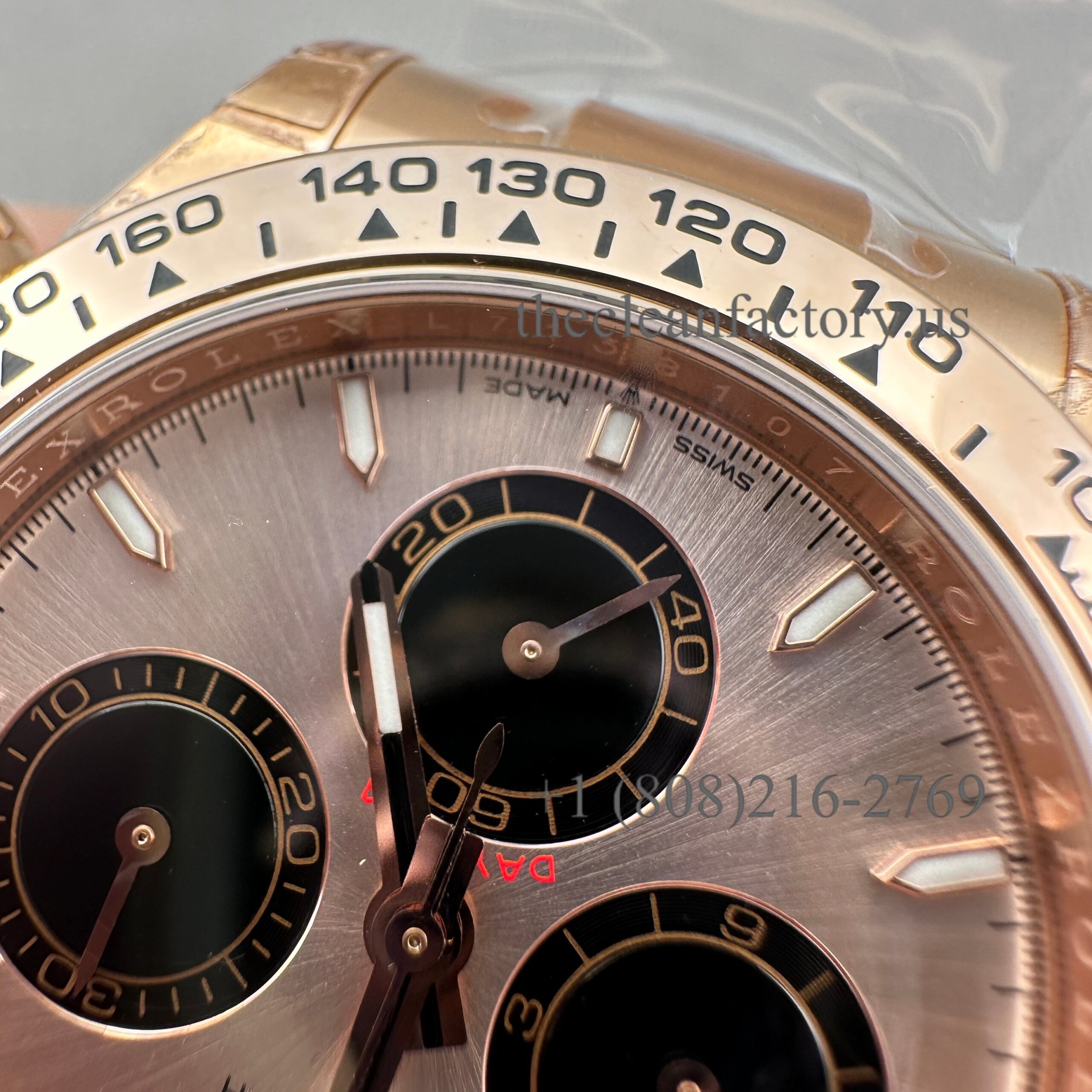 | CASE | – 40mm insider 904L Stainless steel monobloc construction (Upgraded about 5um thick Real 18kt Gold Wrap avoid fad, and can keep the identical color to the genuine) – New Symmetrical case lugs size – Screw-down case-back, push-buttons and winding crown with synthetic rubber seals – ROLEXROLEX laser engraving on Rehaut ring – DLC scratch-protection coating – Dimensions 100% identical with genuine. This case can be used on the genuine. – Rolex Reference Number: 126505-0003 |