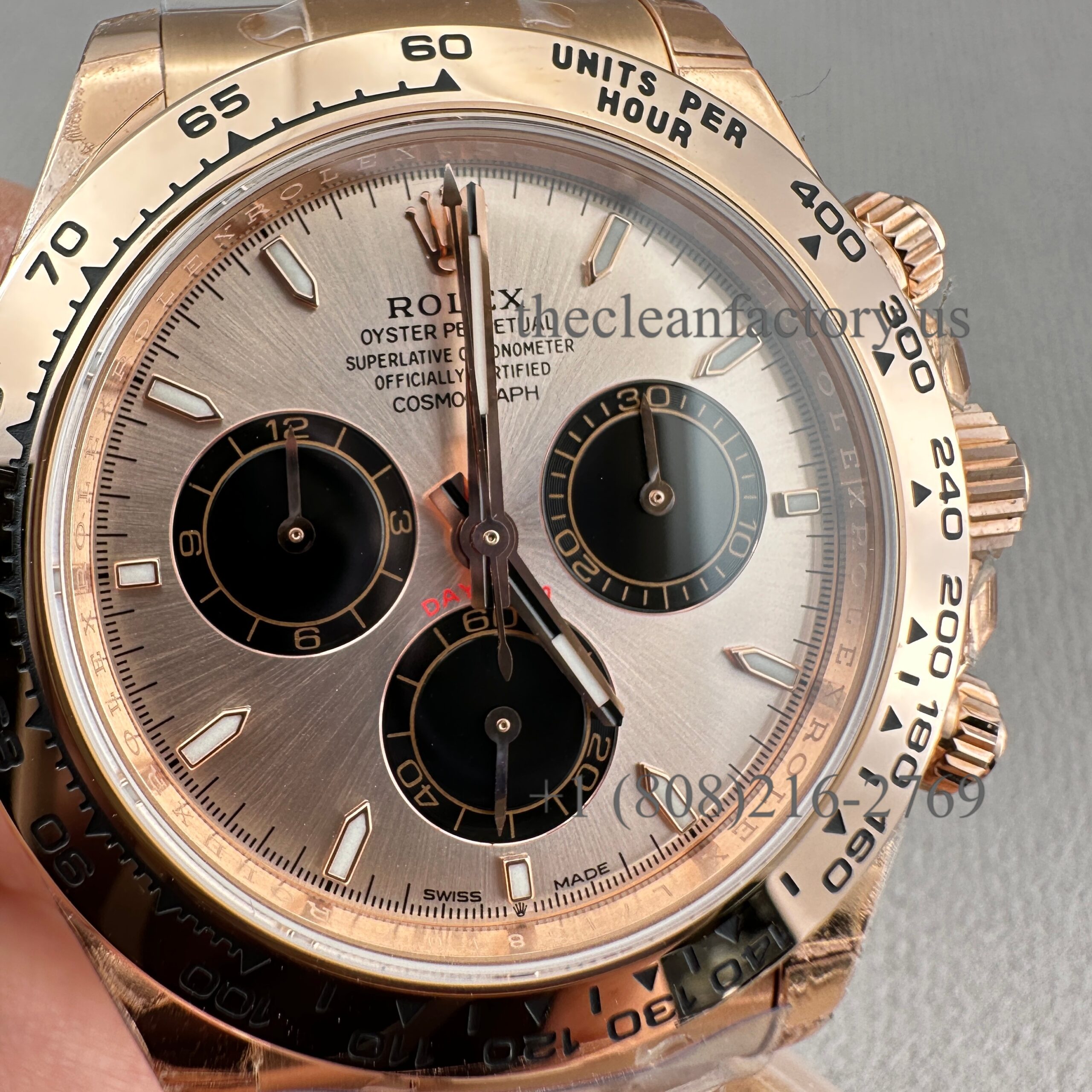 Rolex Cosmograph Daytona, Sundust and bright black dial, 18k Everose gold Watch 126505 on Oyster bracelet, Reference # 126505.
