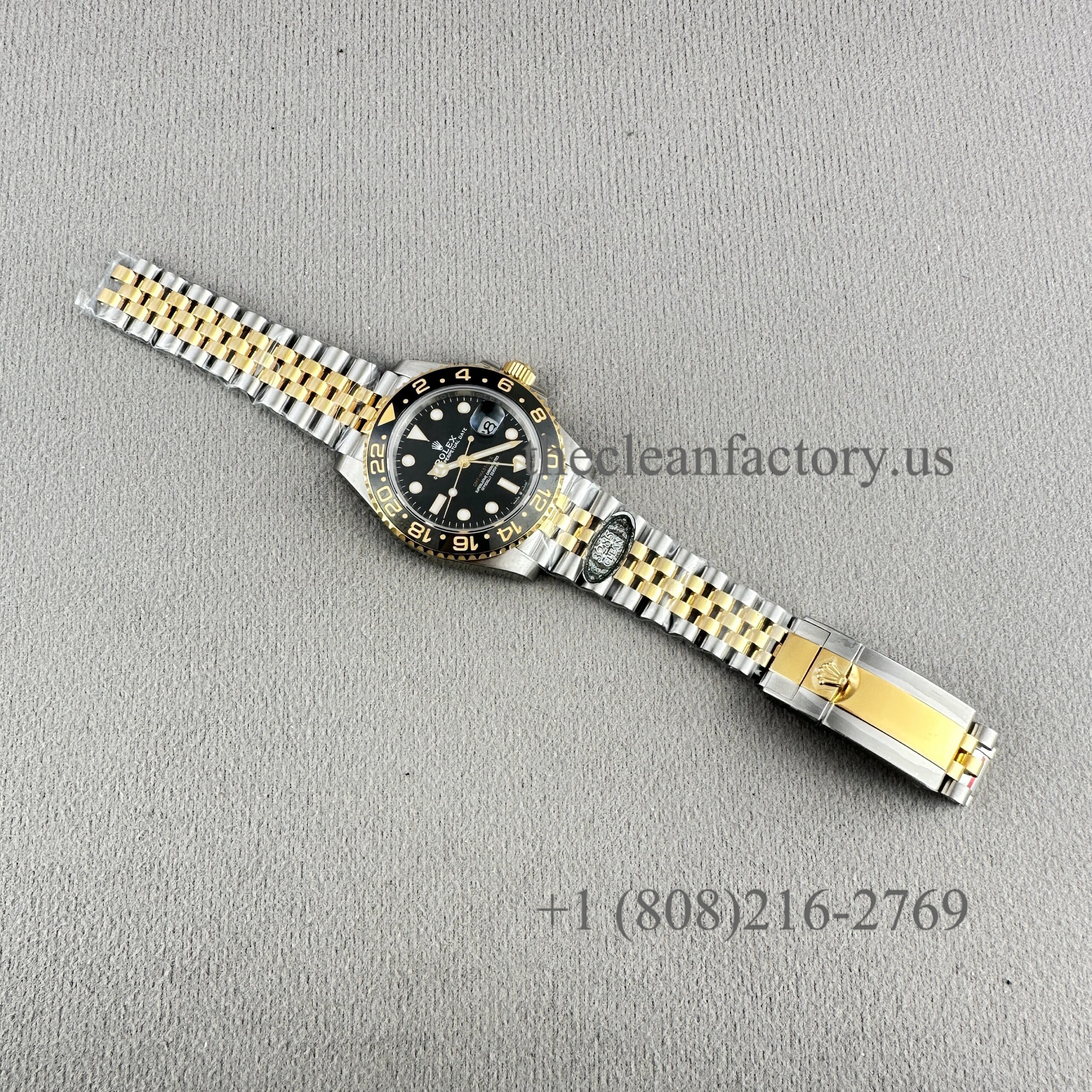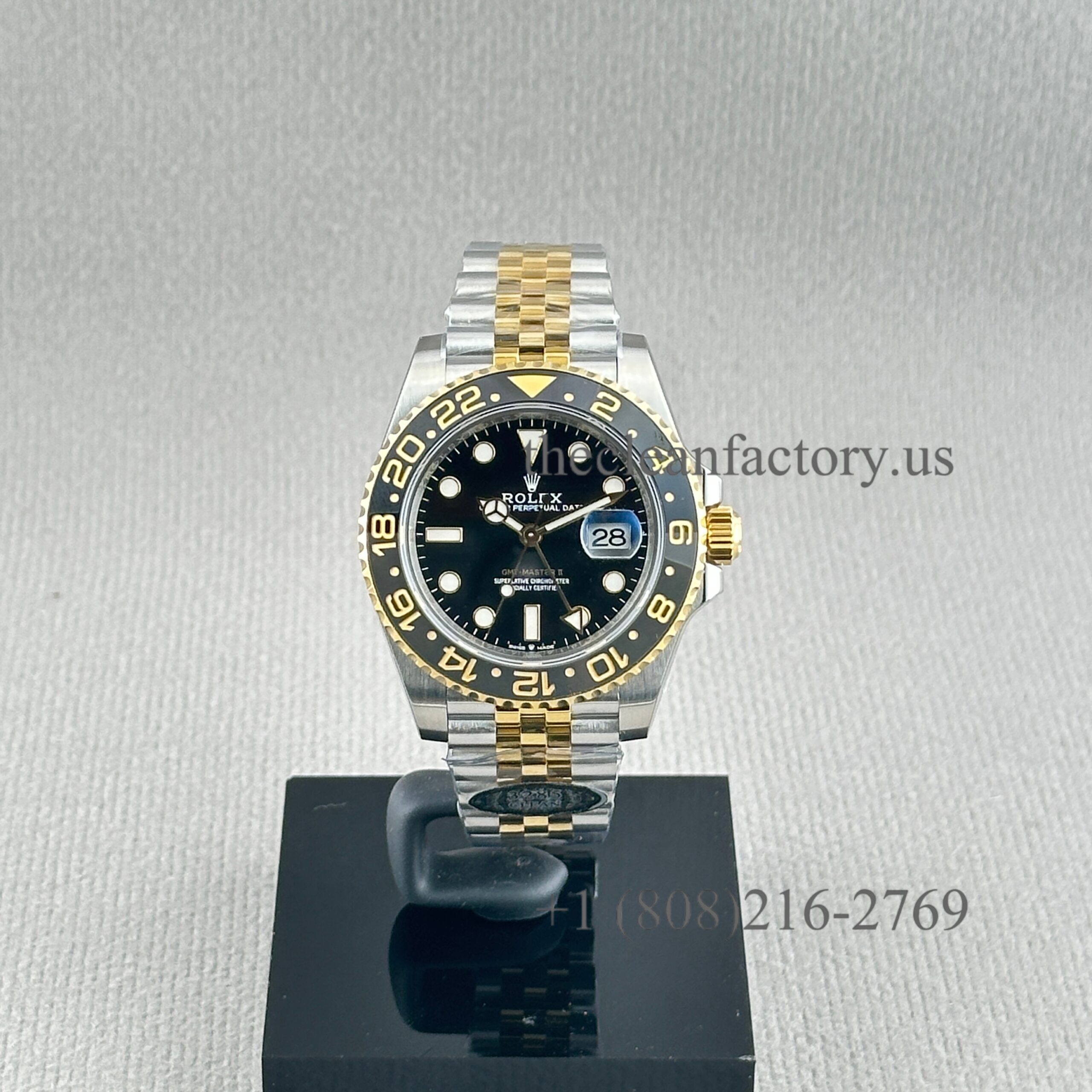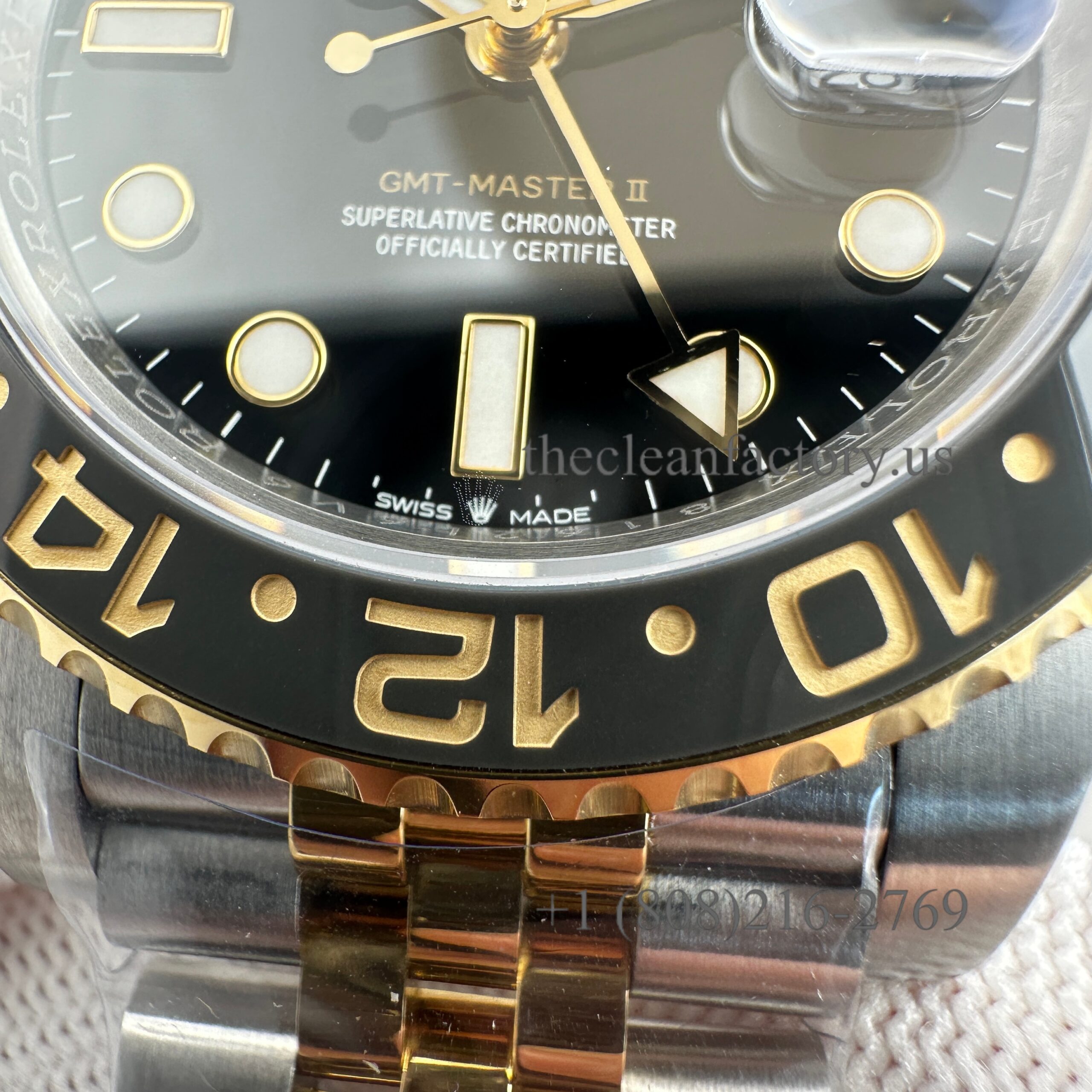 The best replica and upgraded high end yellow gold wrapped for Rolex GMT-Master II 126713GRNR-0001 Jubilee Bracelet “Black” Ceramic Bezel Black Dial 40mm Real Clean factory Made