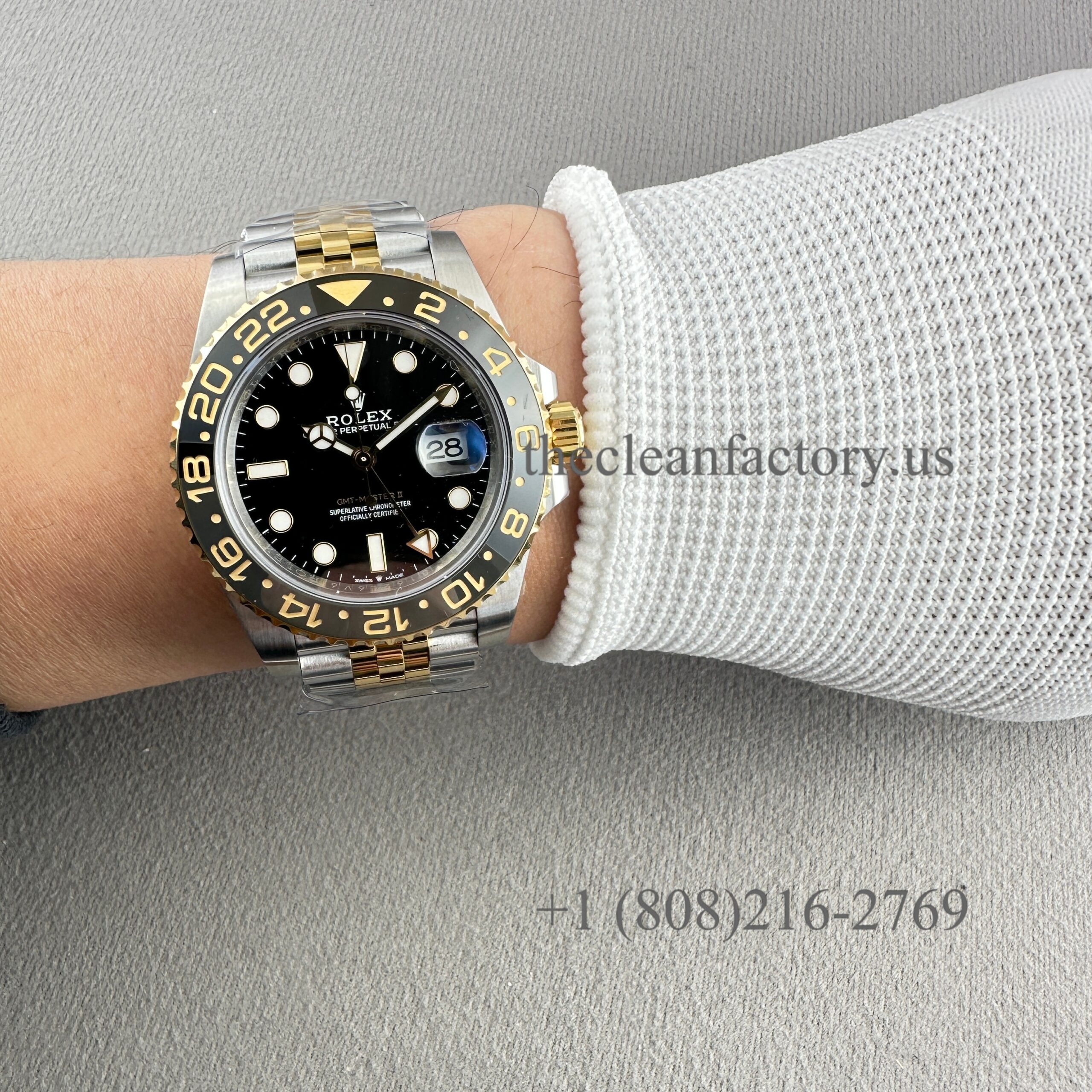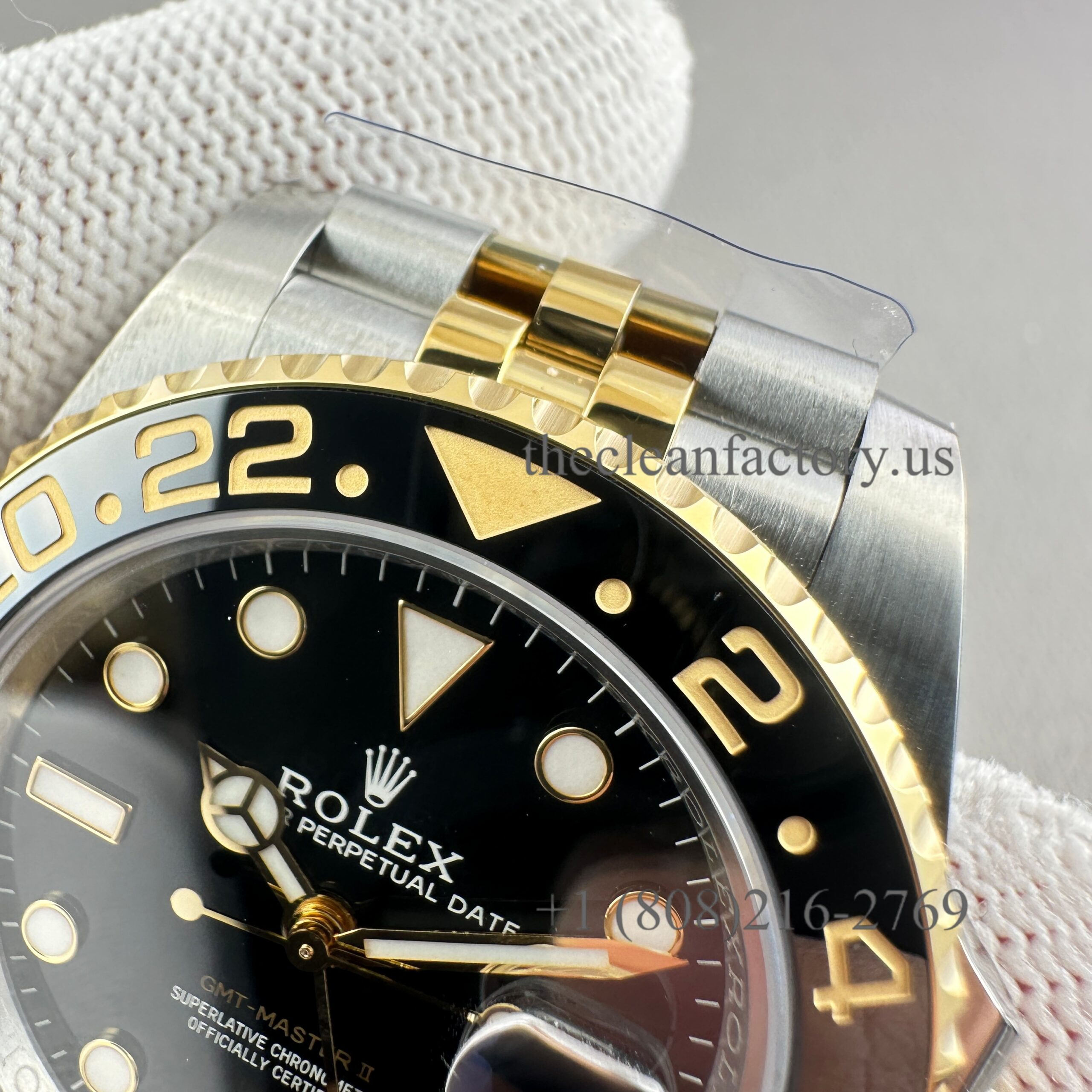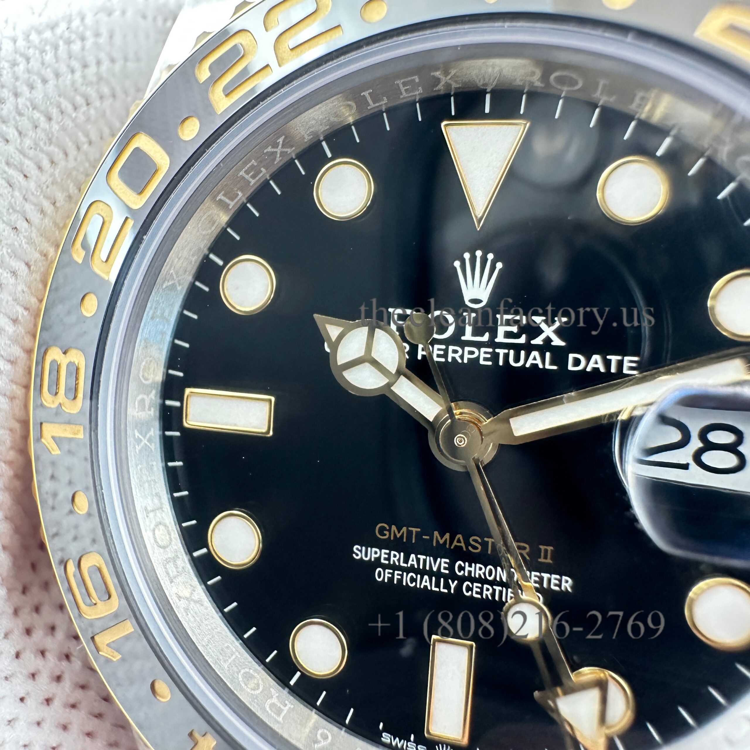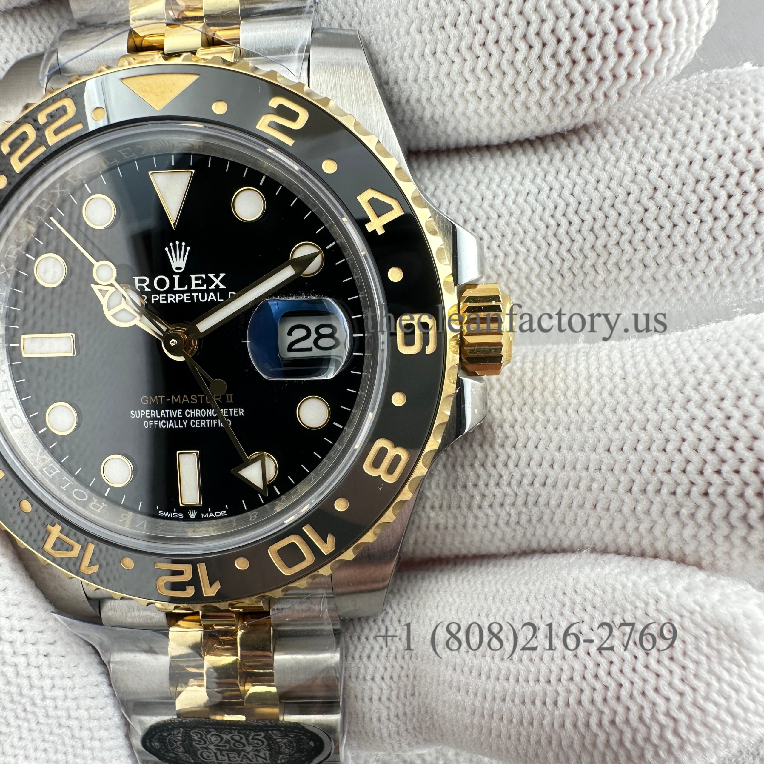 The best replica and upgraded high end yellow gold wrapped for Rolex GMT-Master II 126713GRNR-0001 Jubilee Bracelet “Black” Ceramic Bezel Black Dial 40mm Real Clean factory Made