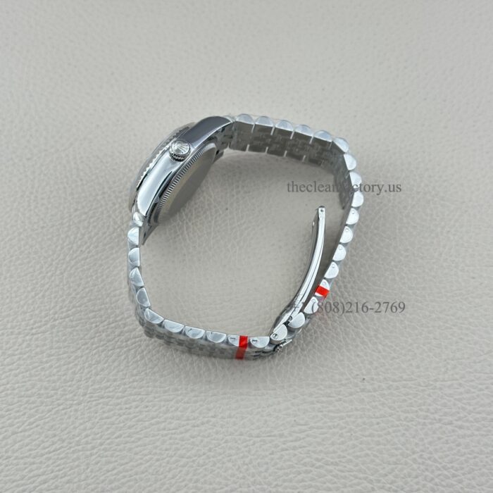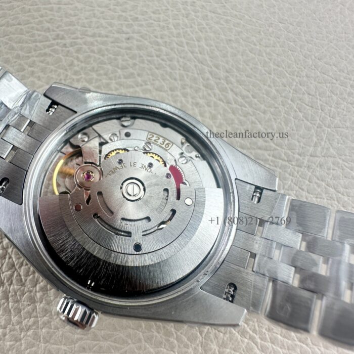 MOVEMENT | – Rolex 2236, the latest new clone, used Swiss Eta components. – Correct engraved identical markings inside and out. – Oscillator: Anti magnetic – Glucydur gilt – anti-magnetic balance wheel – Two years warranty – Automatic, mechanical bidirectional self-winding via perpetual rotor – Smooth Sweeping Seconds Hand Motion, 28.800 VPH (4Hz) – 31 Jewels (Red rubies) – Our exclusive Clean factory clone Rolex movements are designed with improved key point parts like wider wheel teeth for heavy, long-lasting use and are lubed with five different types of durable Swiss lubricants. This results in a movement with typical service needs every 5 years instead of the two that the genuine movements require |