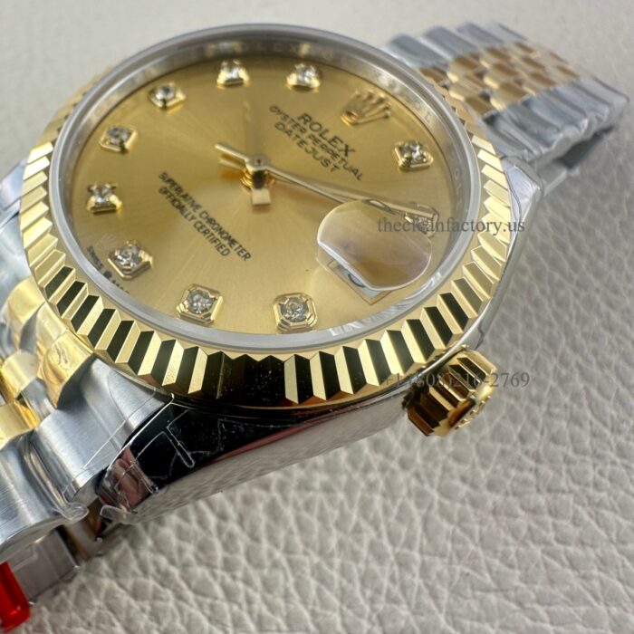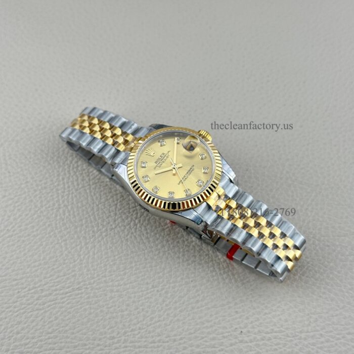 The Best Replica Rolex DateJust 31mm 904L Oystersteel 278273-0026 Super Clone 2236 Movement Yellow Gold Wrap Fluted Bezel Yellow Gold Dial Jubilee five-piece links Waterproof Clean factory Made