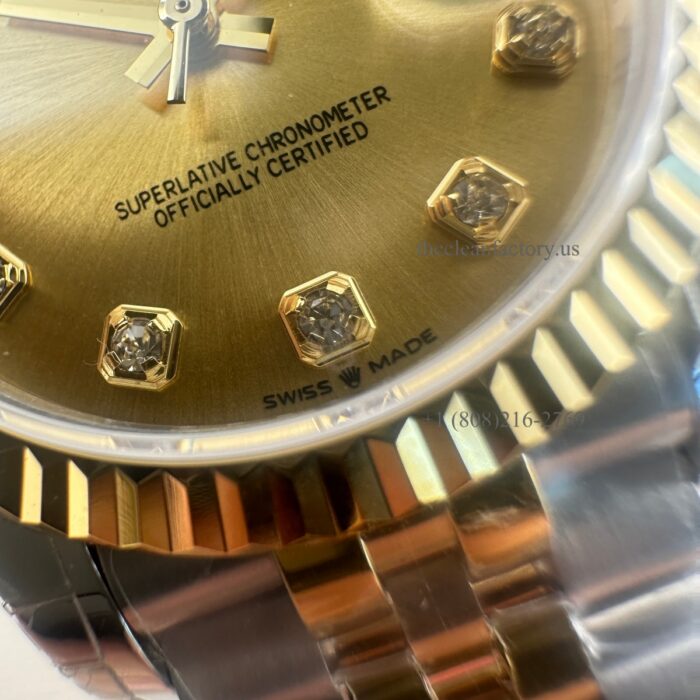 BEZEL – High-end exclusive Clean Factory upgraded Genuine substitute Bezel, Real Yellow Gold Wrap about 5um thickness on the 904L . That can avoid fading and always keep it looking like the new.