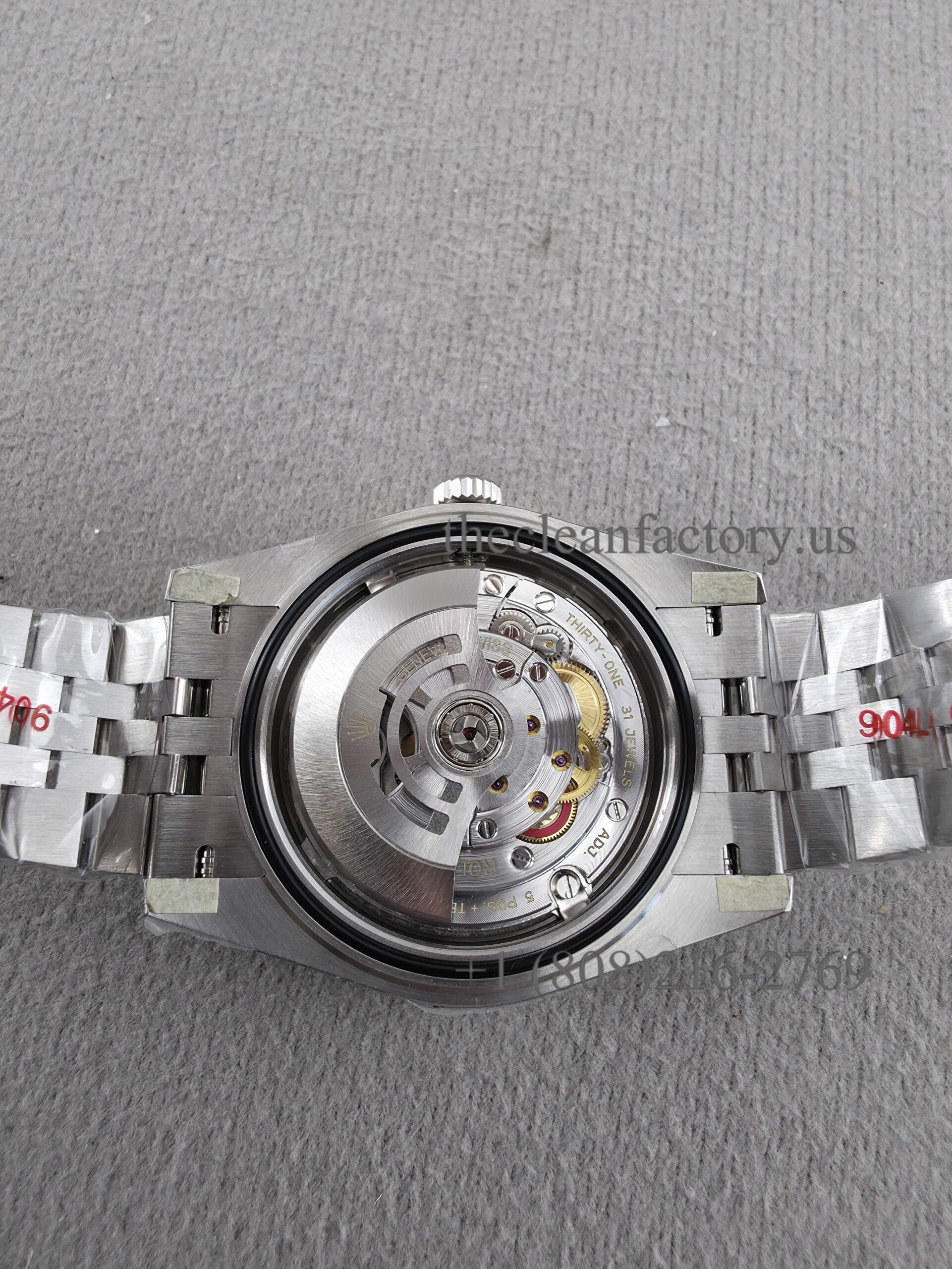 | MOVEMENT | – Rolex 3235, the latest new clone, used Swiss Eta components. – Correct engraved identical markings inside and out. – Oscillator: Anti magnetic – Glucydur gilt – anti-magnetic balance wheel – Two years warranty – Automatic, mechanical bidirectional self-winding via perpetual rotor – Smooth Sweeping Seconds Hand Motion, 28.800 VPH (4Hz) – 31 Jewels (Red rubies) – Our exclusive Clean factory clone Rolex movements are designed with improved key point parts like wider wheel teeth for heavy, long-lasting use and are lubed with five different types of durable Swiss lubricants. This results in a movement with typical service needs every 5 years instead of the two that the genuine movements require |