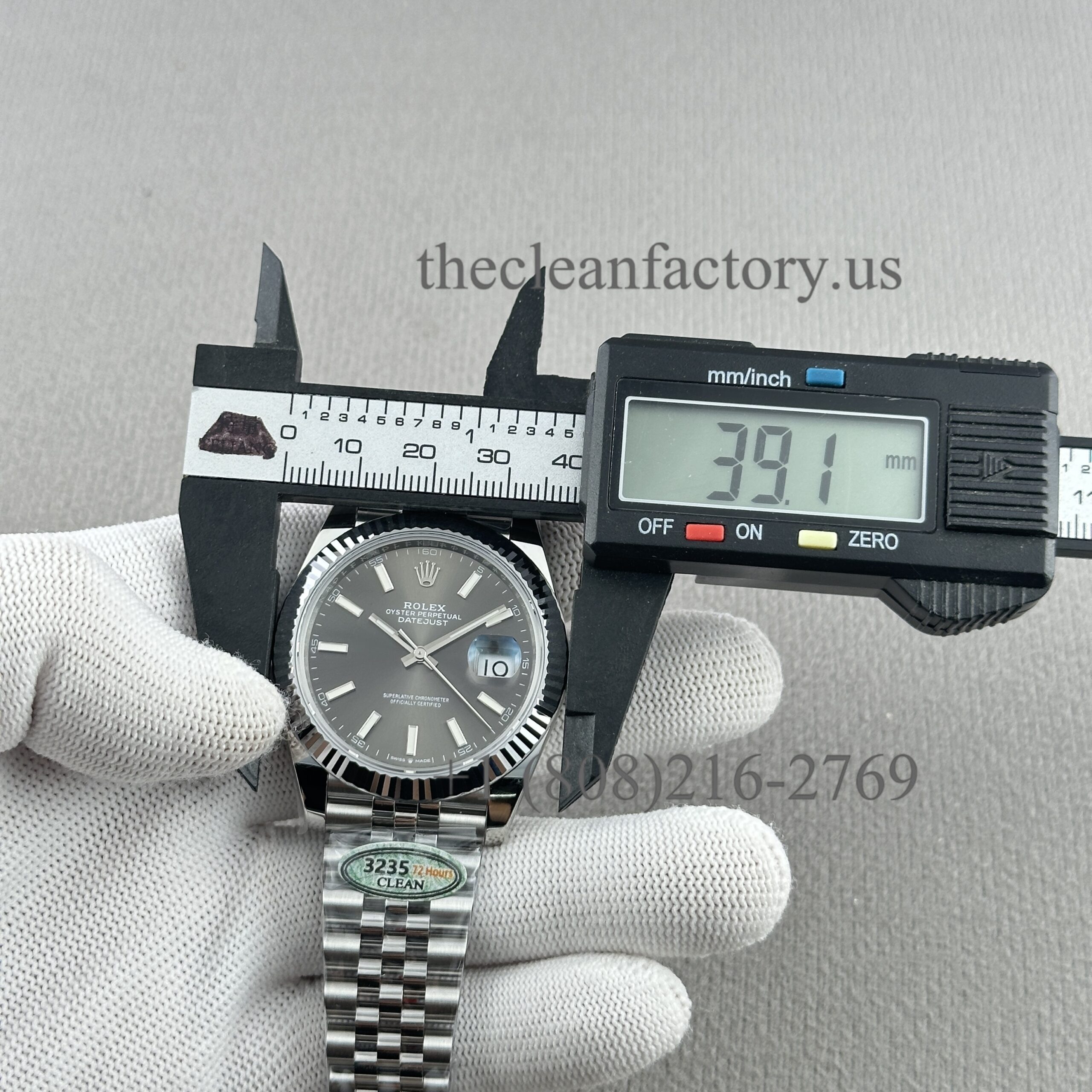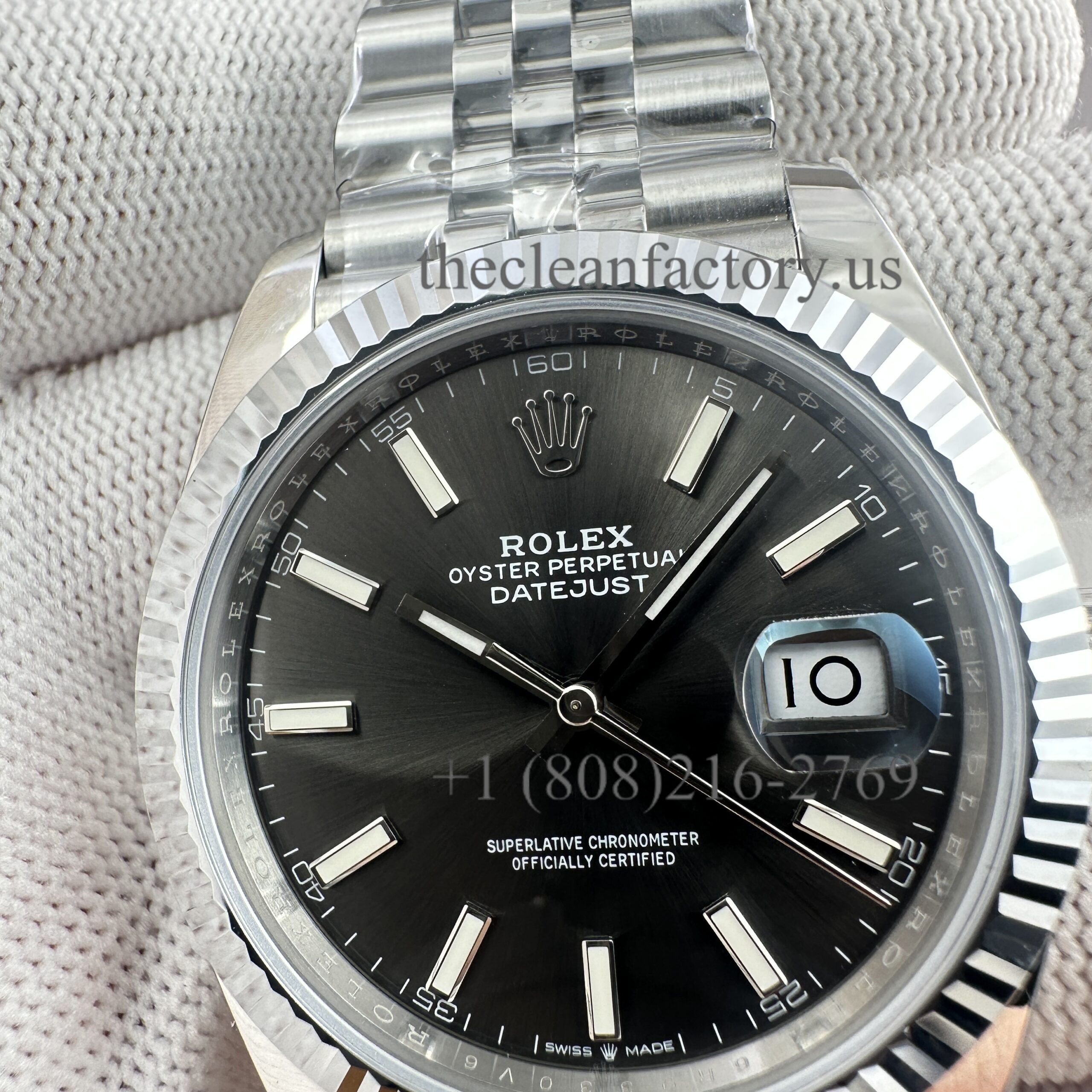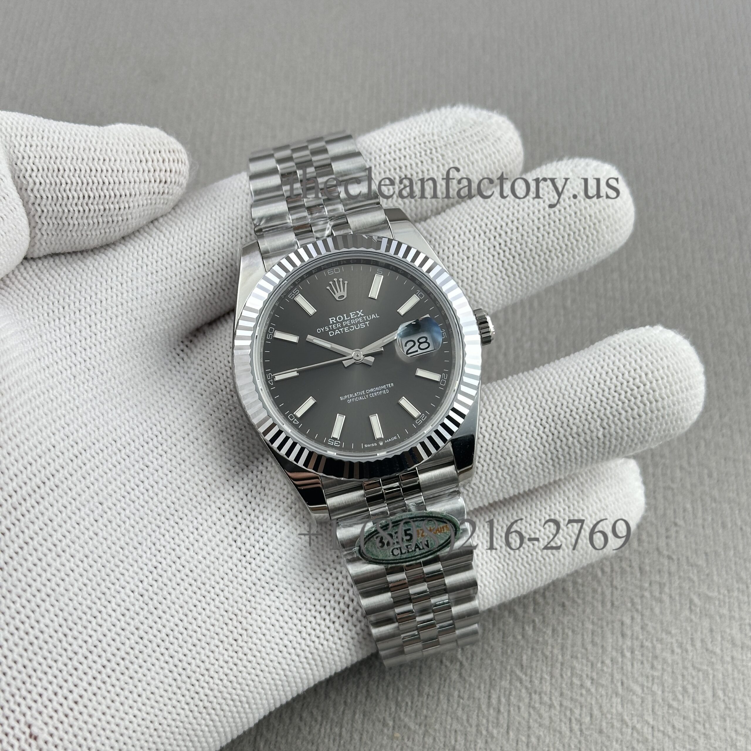 | DIAL | – Rhodium Grey Dial. Hour markers with bright lume Superluminova blue luminescence phosphorescent that glows up to nine hours at night with uniform luminosity throughout – Highly legible with laser precision text, prints and engravings , 100% same as genuine – Correct Date font and size. – The color performance is no different from the genuine in Any light Angle – 18k gold wrapped hour markers and hands to prevent tarnishing |